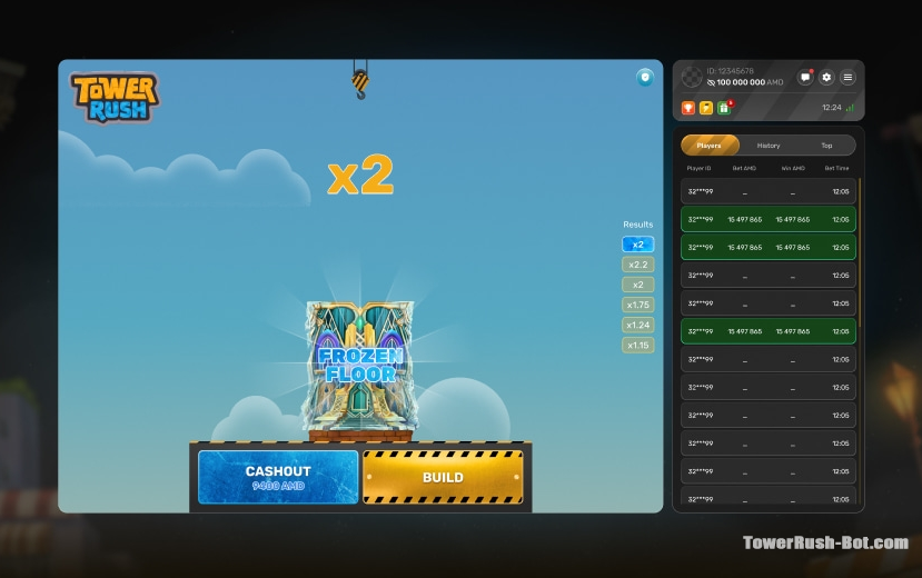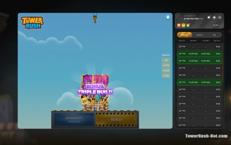 Официальный Tower Rush bot анализирует тысячи партий и даёт подсказки: когда входить, сколько этажей строить, и когда остановиться. Его точность превышает 93%. В связке со стратегиями это превращает игру в системный заработок, а не случайность.